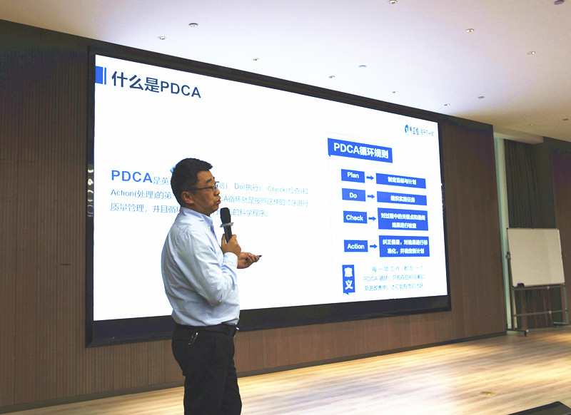 鞏總開(kāi)場(chǎng)以“小青蛙跳水”游戲的方式活躍氣氛,通過(guò)提問(wèn)復習了之前學(xué)習的PDCA管理方法的知識。緊接著(zhù)介紹了QC小組的概況,并按照QC小組的工作步驟,要求各小組找出主題目標,內部討論存在的問(wèn)題,并通過(guò)分析和點(diǎn)評各小組的案例引導與會(huì )各組逐漸掌握以PDCA的思維去對一個(gè)問(wèn)題事件展開(kāi)分析、找到改善辦法。